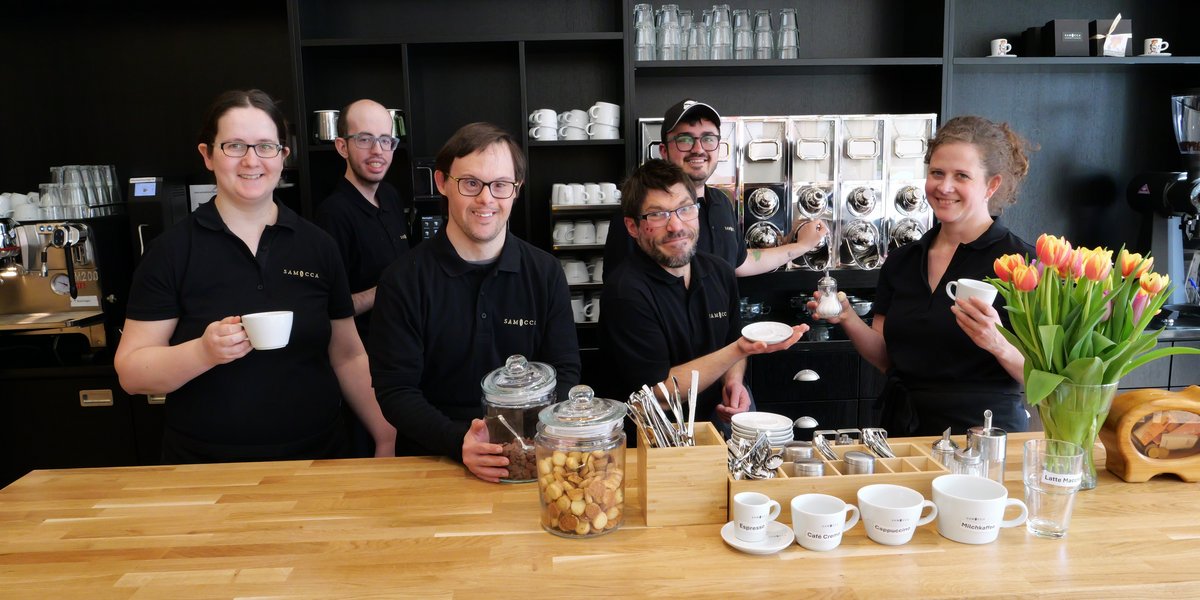 Besonders bemerkenswert am SAMOCCA Weissach ist unser inklusiver Ansatz: Bei uns arbeiten Menschen mit und ohne Handicap Seite an Seite. Neben unserem Leitungsteam und pädagogischen Mitarbeitenden bringen Menschen mit geistiger Behinderung oder psychischer Erkrankung ihre Fähigkeiten im gesamten Cafébetrieb ein. Unter dem Leitgedanken „fordern und fördern“ übernehmen sie verantwortungsvolle Aufgaben und wirken weitgehend selbstständig mit – ein lebendiges Beispiel für gelebte Teilhabe.